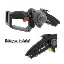 Ένα μικρό, εύχρηστο πριόνι μπαταρίας σχεδιασμένο για κοπή ξύλου κατά τη διάρκεια εργασιών κηπουρικής και στέγης. Ιδανικό για γρήγορο κόψιμο κλαδιών δέντρων, θάμνων, ροκανιδιών και κοπής στοιχείων αρχιτεκτονικής κήπου. Τροφοδοτείται από μπαταρία συμβατή με τις συσκευές συστήματος Sthor 20 V. Η αντιολισθητική λαβή επιτρέπει σταθερό κράτημα κατά την εργασία. Ένα επιπλέον κουμπί στο περίβλημα προστατεύει από τυχαία ενεργοποίηση.
