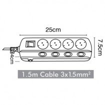 ΠΟΛΥΠΡΙΖΟ ΑΣΦΑΛΕΙΑΣ 4 ΘΕΣΕΩΝ ΜΕ 1,5 Μ(3Χ1.5)ΚΑΛΩΔΙΟ.3 ΑΥΤΟΝΟΜΟΥΣ ΔΙΑΚΟΠΤΕΣ ΚΑΙ ΕΝΑΝ ΚΕΝΤΡΙΚΟ ΔΙΑΚΟΠΤΗ