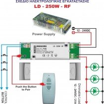 Ο Led Controller LD-250W-RF κατασκευάσθηκε για να καλύψει τις ανάγκες διαχείρισης και ρύθμισης έντασης του φωτισμού επαγγελματικών χώρων με φωτιστικά σώματα τύπου LED 12-24V DC όπως LED ταινίες, LED λαμπτήρες και προβολείς. Είναι απόλυτα ασφαλές και αξιόπιστο προϊόν διότι είναι κατασκευασμένο από ειδικά ολοκληρωμένα κυκλώματα και πλαστικά μέρη αντοχής για δύσκολες συνθήκες λειτουργίας και χρήσης.